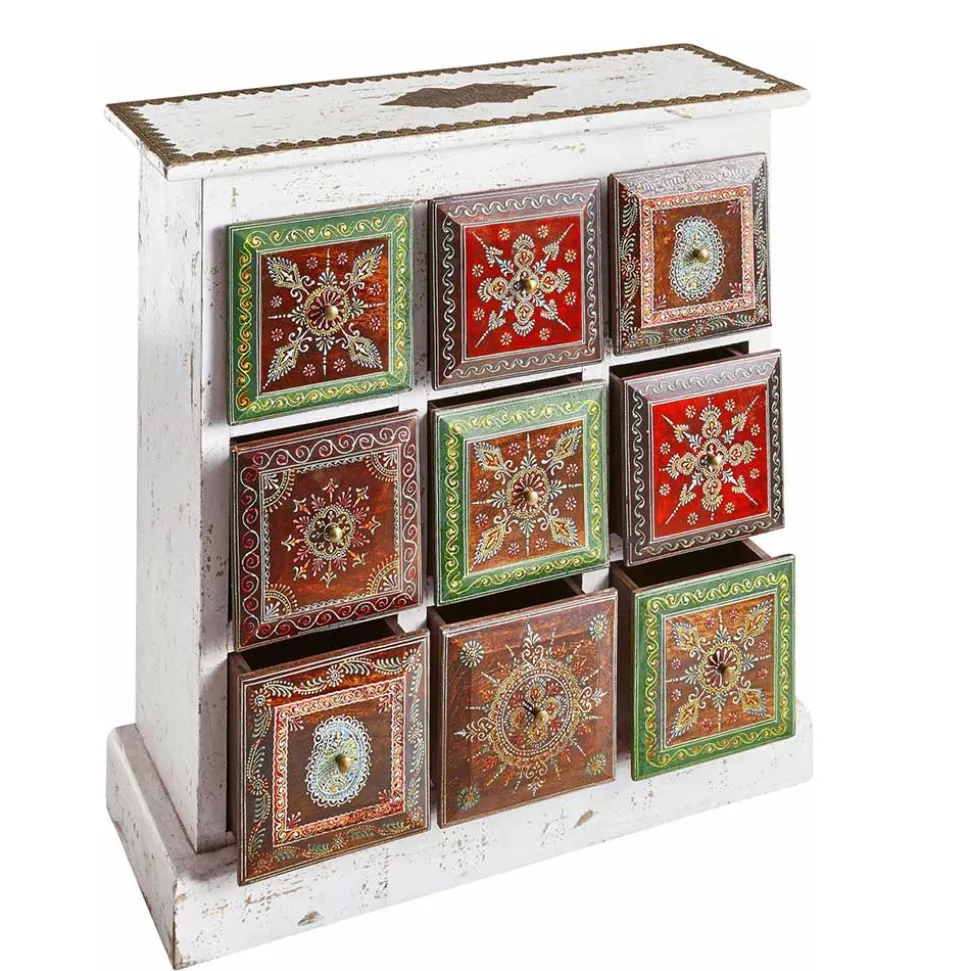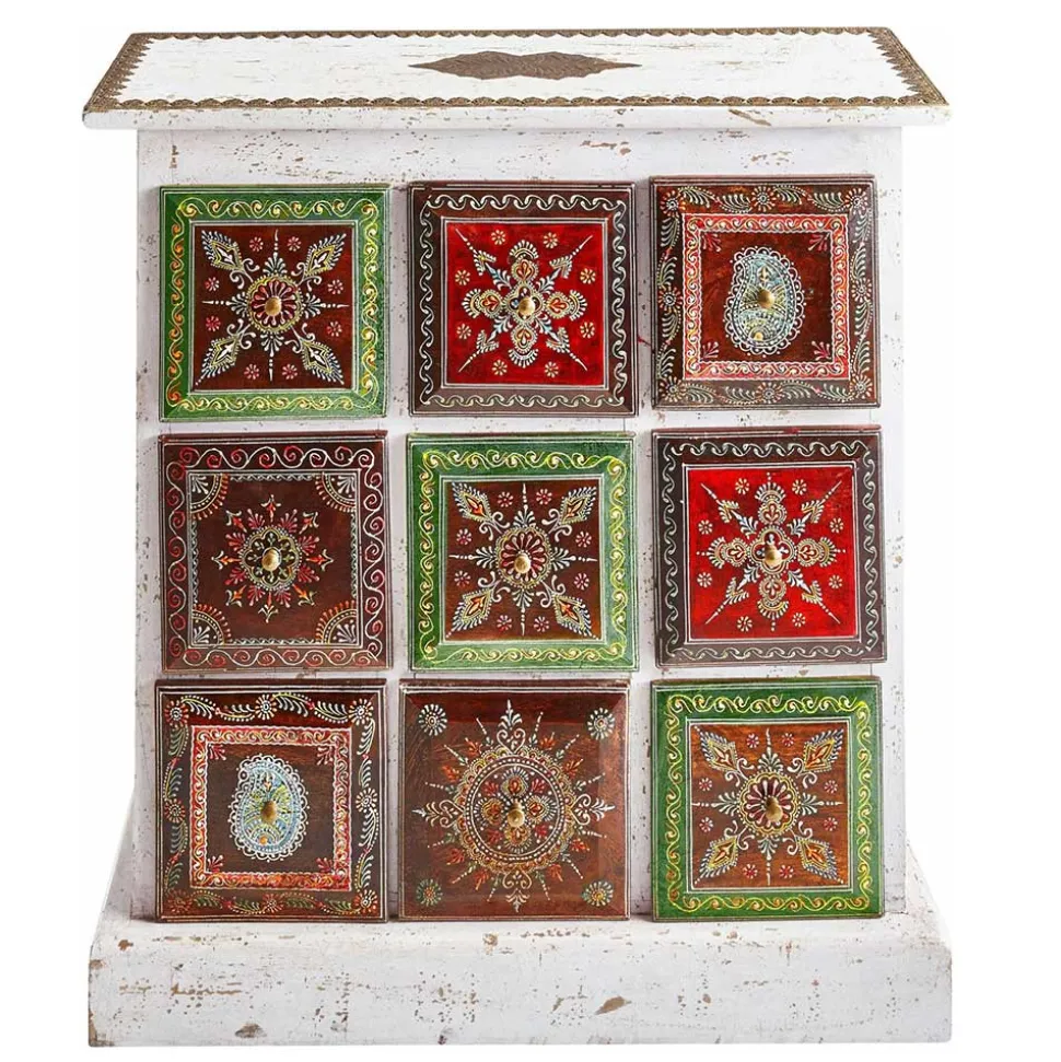 - Phantasievolle Kommode in Antikweiß und Bunt
