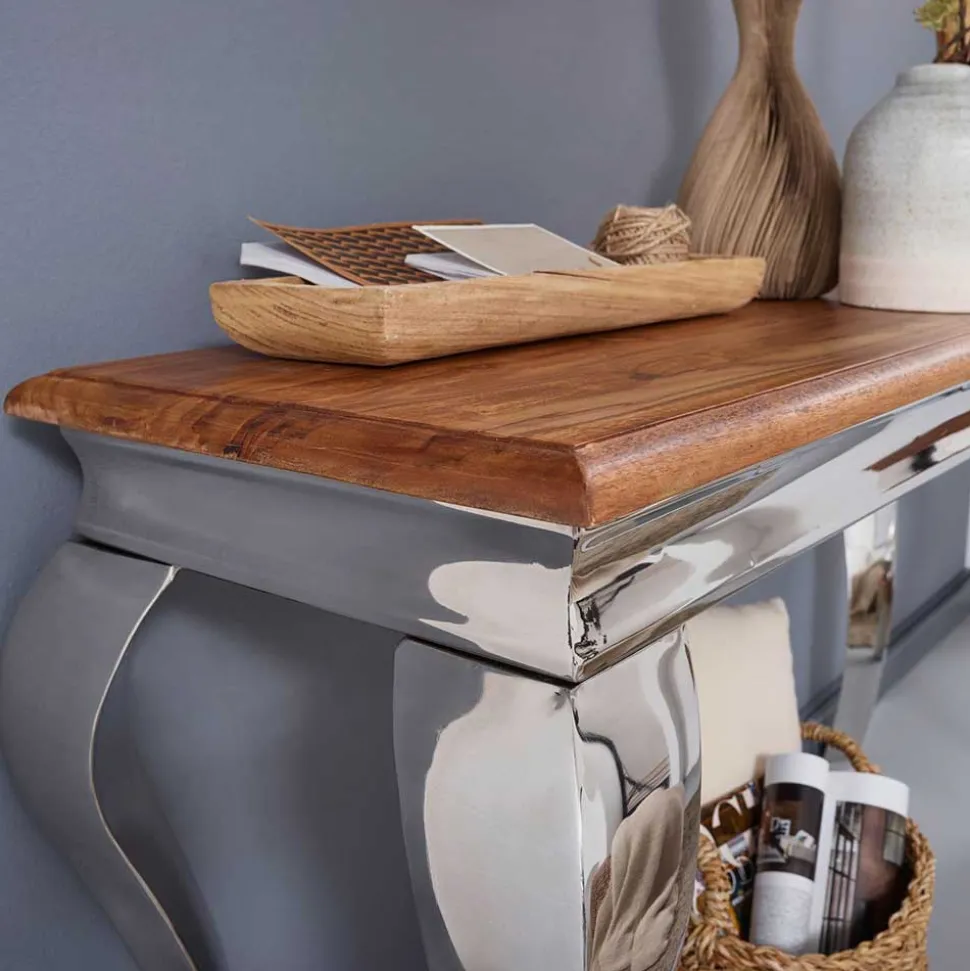 - Orientalisch anmutender Konsolentisch in Sheesham- und Silberfarben