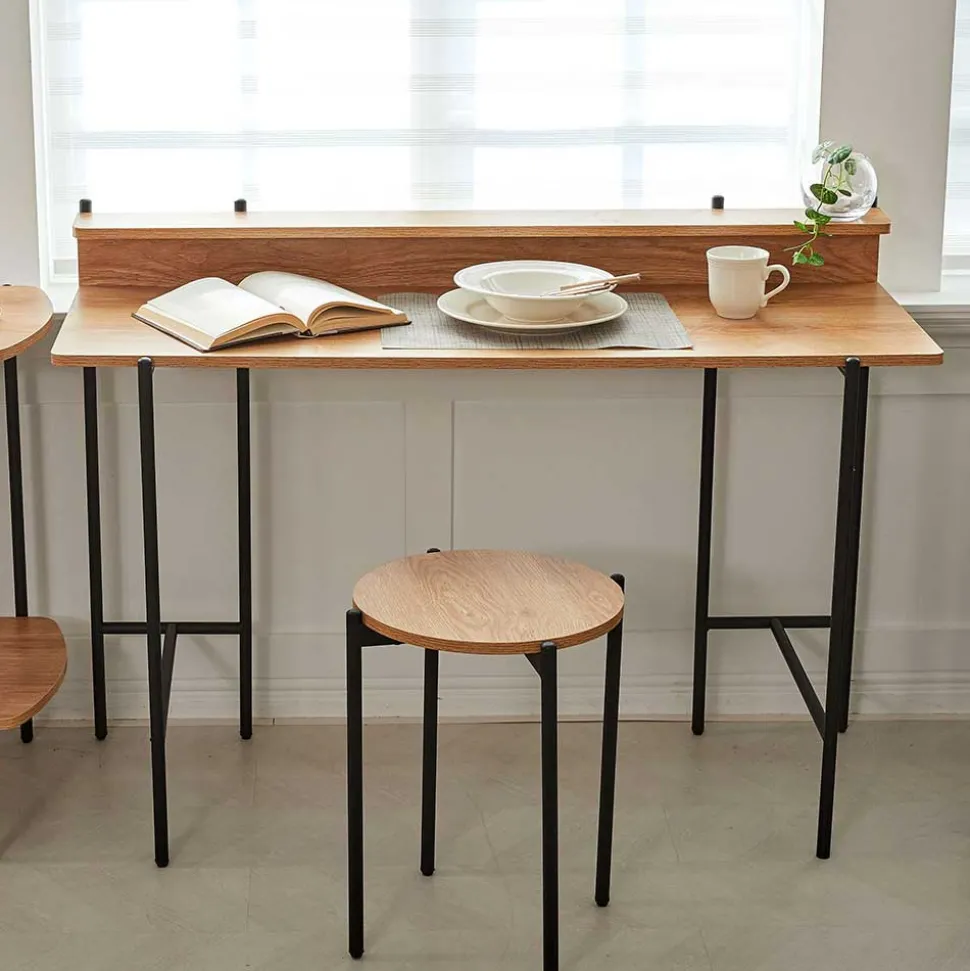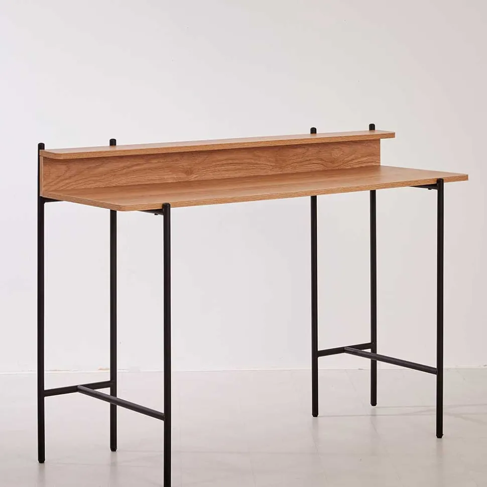 - Puristischer Schreibtisch in Akaziefarben und Schwarz