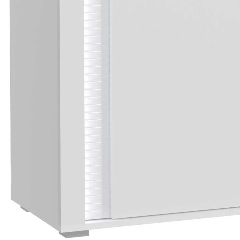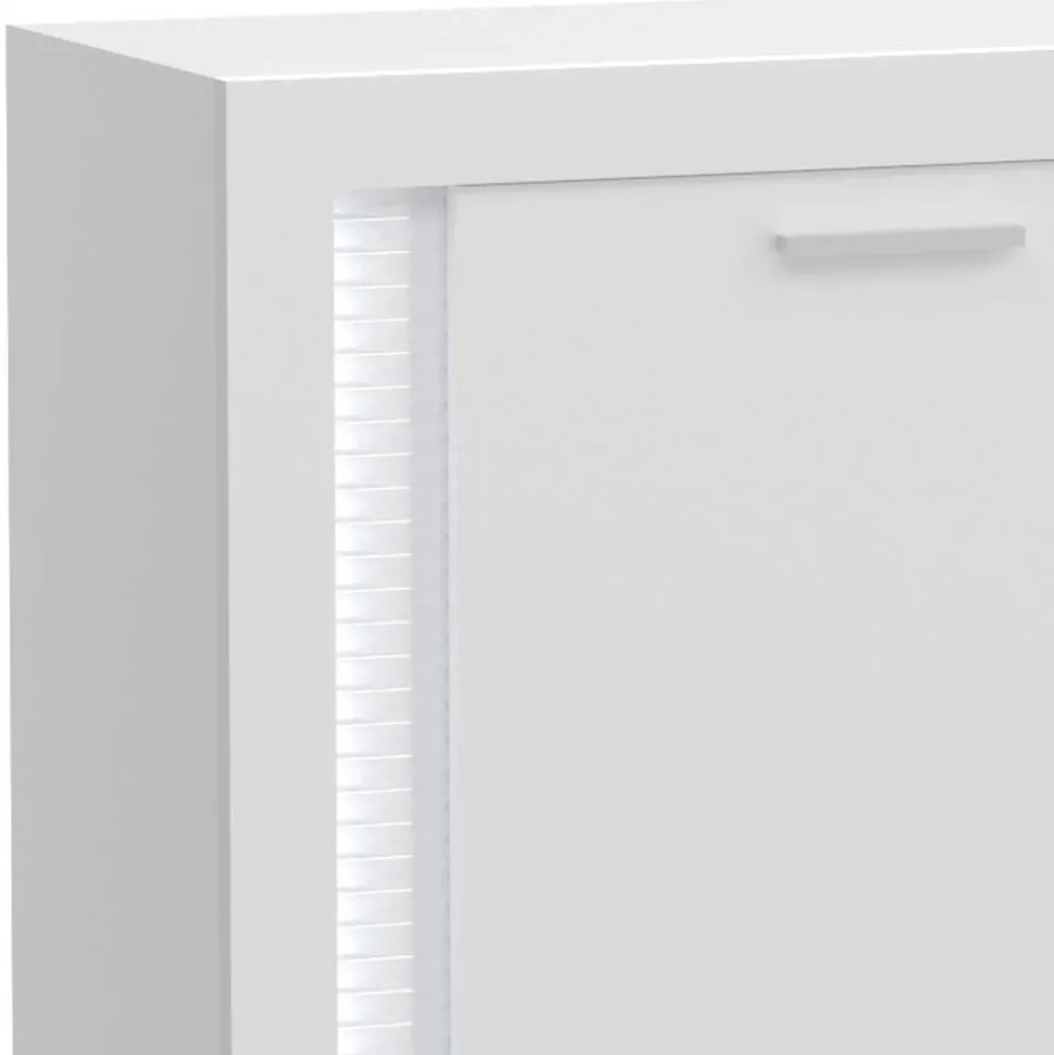 Auch in puncto Design lässt das Sideboard keine Wünsche offen: Dezente Kunststoff-Griffleisten in Silberfarben und die inkludierte vertikale LED Frontbeleuchtung setzen stilvolle Akzente und runden das Gesamtbild ab.