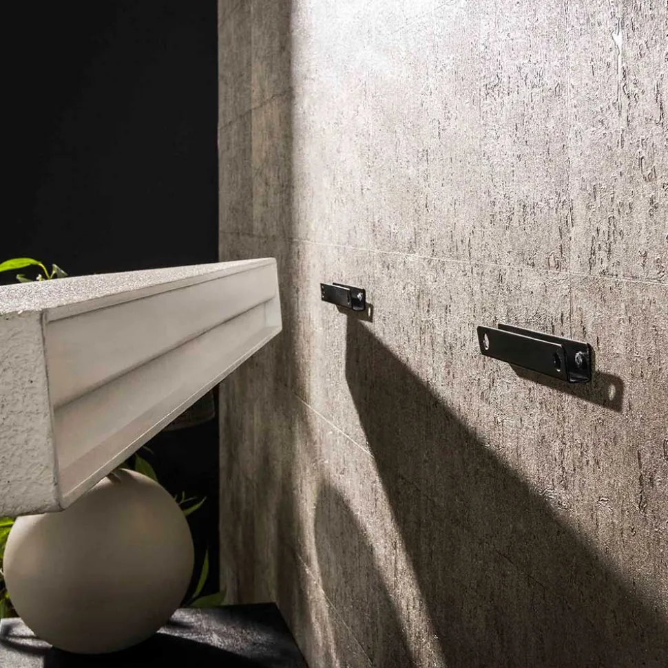 - Wird mit zwei Metall-Leisten an der Wand befestigt