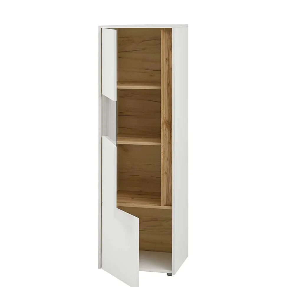 - Trendige Wohnwand in Weiß und Wildeichefarben