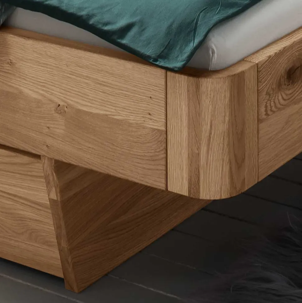 Erwecken Sie Ihr Schlafzimmer zum Leben mit dem Designbett „Zennian“ und erleben Sie die zeitlose Schönheit von massivem Wildeichenholz in Perfektion.
