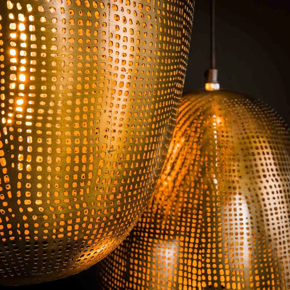 - Die Metall-Lampenschirme sind dekorativ perforiert und erzeugen einen diffusen Lichtschimmer