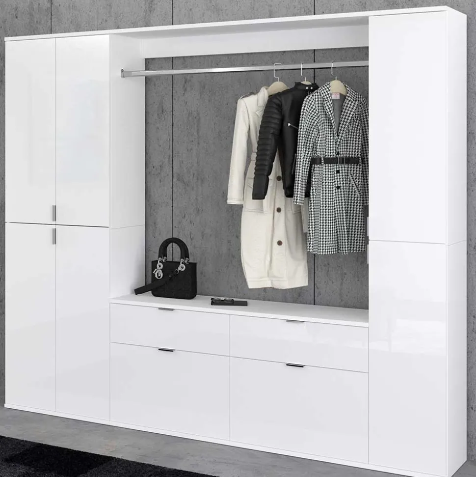 Mit den Dielenmöbeln der Serie „Ejulia“ holst du dir nicht nur schlichte Eleganz in dein Zuhause, sondern auch ein modernes Design, das sich perfekt in jeden Eingangsbereich einfügt. Modernes Design zeichnet sich durch klare Linien, funktionale Elemente und hochwertige Materialien aus – genau das, was diese Garderobenmöbel bieten. Die weiße Hochglanz-Oberfläche verleiht deinem Flur ein edles, lichtdurchflutetes Ambiente, während die Kombination aus Holzwerkstoff und Spiegelglas sowohl ästhetisch ansprechend als auch langlebig ist.