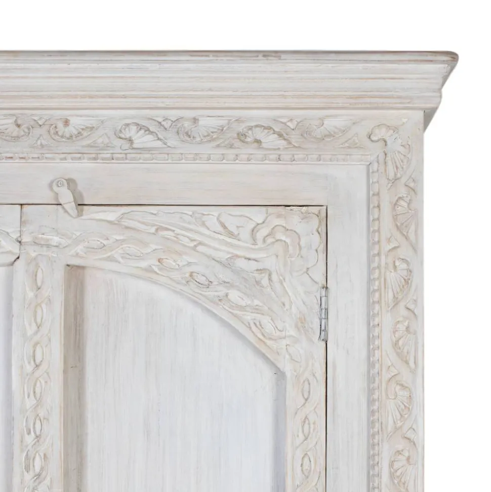 - Oberflächen mit White Wash Effekt behandelt und von Hand beschnitzt