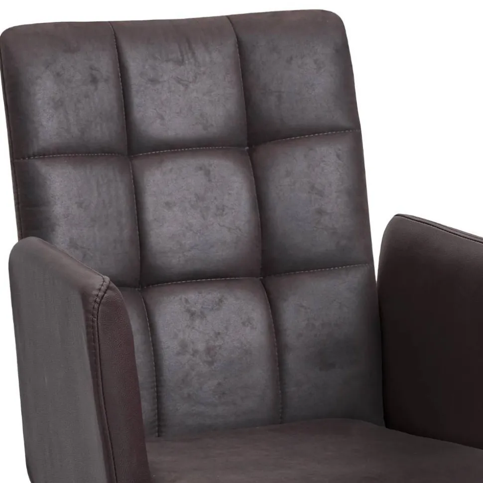 Der drehbare Esszimmerstuhl „Corabia“ überzeugt mit einem warmen Dunkelbraun in Kombination mit Wildeichefarben und bringt stilvolle Gemütlichkeit an Ihren Esstisch. Die leicht nach hinten geneigte Rückenlehne sorgt gemeinsam mit den bequemen Armlehnen für eine entspannte Sitzhaltung und lädt dazu ein, Mahlzeiten mit Familie oder Gästen in vollen Zügen zu genießen.