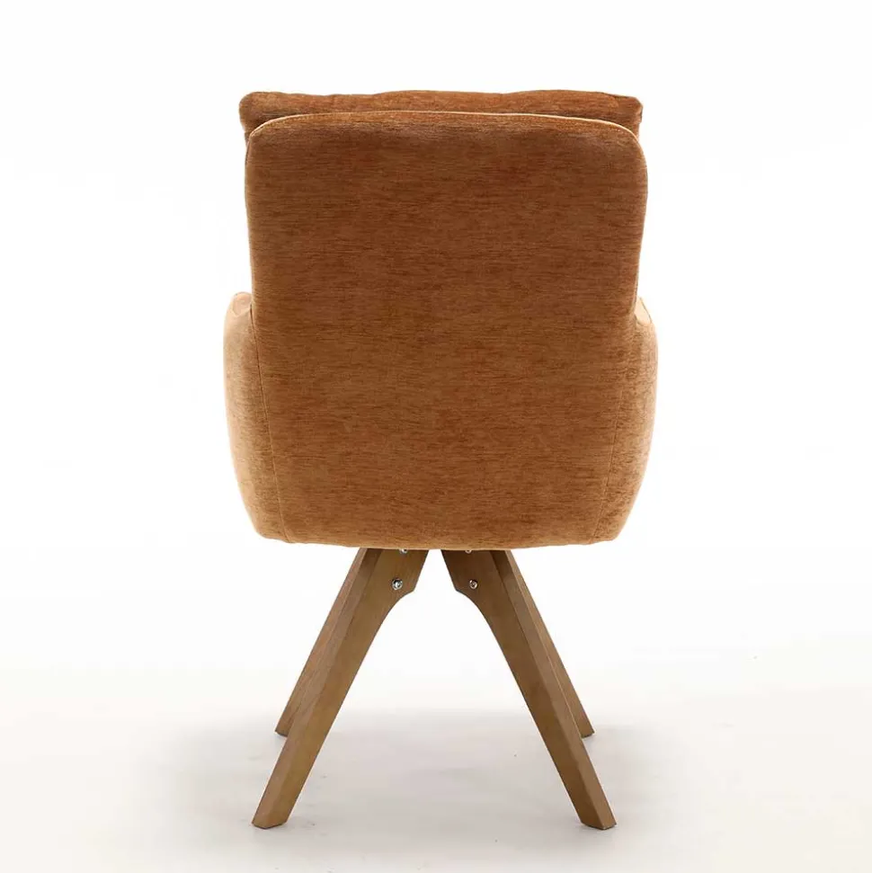 Mit einer hohen Rückenlehne in Kissenoptik und Armlehnen, die eine Höhe von 66 cm aufweisen, bietet der „Manu“ bestmöglichen Halt. Seine stabilen Massivholzbeine aus Buche in Eichenholzfarbe gewährleisten Sicherheit und Stabilität. Mit kompakten Maßen von 60 cm Breite, 93 cm Höhe und 67 cm Tiefe ist dieser Stuhl auch ideal für kleinere Räume geeignet und bietet zudem eine praktische 180-Grad-Drehfunktion.
