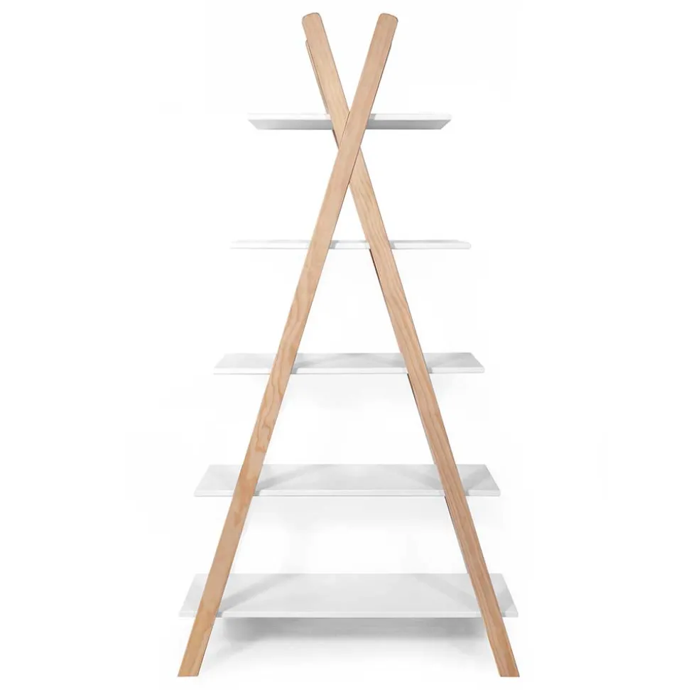 „Kinfada“ ist aus massivem Kiefernholz und MDF gefertigt – eine durchdachte Materialkombination, die Stabilität und Langlebigkeit garantiert. Das robuste Massivholzgestell in angesagter Zeltform sorgt für einen sicheren Stand und verleiht dem Regal eine ganz besondere Note. Die fünf Böden aus stabilem MDF tragen mühelos Bücher, Pflanzen, Dekoration oder Spielzeug.