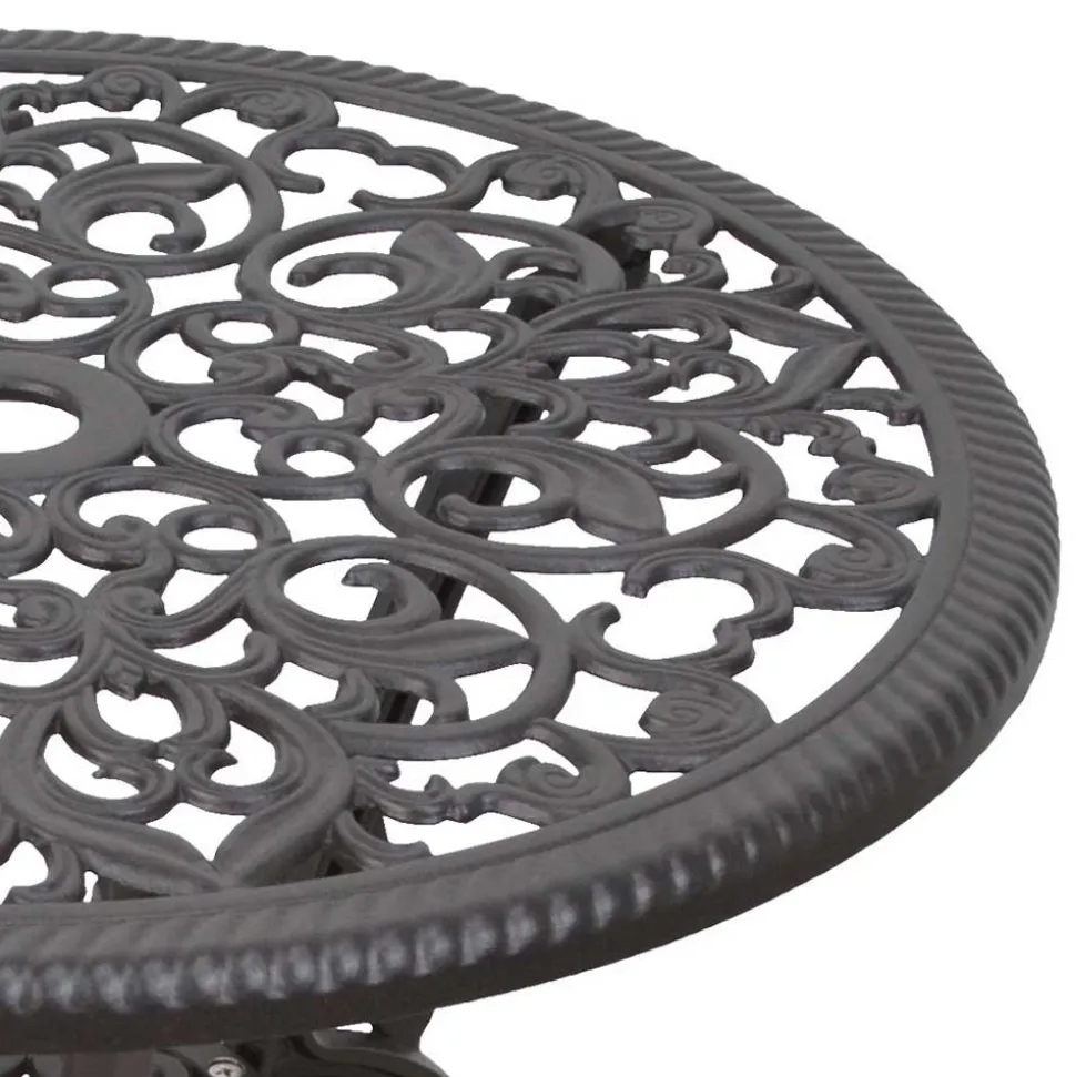 Die Tischplatte des „Hocumola“-Tisches ist nicht einfach nur glatt – sie ist ein wahres Kunstwerk. Feine florale Verzierungen schmücken die Oberfläche und verleihen dem Tisch einen eleganten, edlen Look. Diese filigranen Details sorgen dafür, dass jeder Blick auf den Tisch ein Highlight ist und dass Ihr Gartentisch mehr ist als nur ein praktisches Möbelstück – er wird zu einem echten Mittelpunkt. Ob beim Kaffee mit Freunden oder beim Abendessen im Freien, diese Verzierungen lassen den Tisch immer edel und ansprechend wirken.