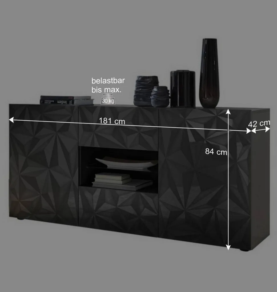 Dunkelgraues Design-Sideboard in Hochglanz lackiert – Kuriasna