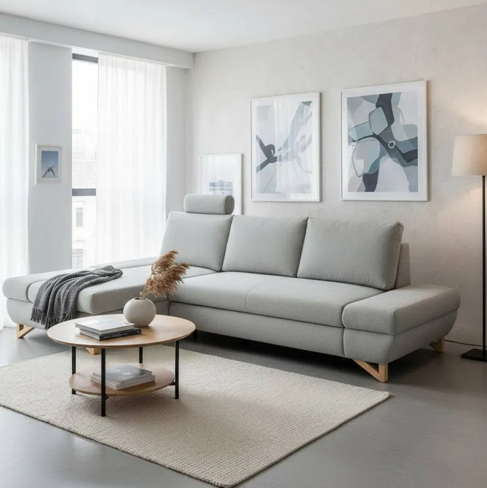 Skandi Design trifft auf Funktionalität: Die Eckcouch mit Schlaffunktion „Baonga“
