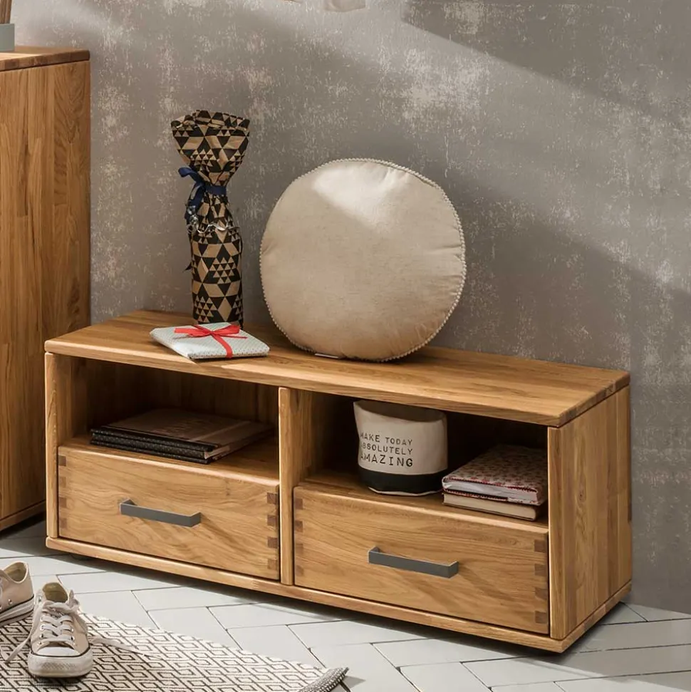 Eleganz und Funktionalität verschmelzen in der Flurbank „Teano“, einem Prachtstück unseres Online-Shops Wohnen.de. Dieses Möbelstück, gefertigt aus massivem Eichenholz, bringt die Schönheit der Natur direkt in Ihren Eingangsbereich. Eiche steht nicht nur für Langlebigkeit und Robustheit, sondern beeindruckt auch durch ihre charakteristische Maserung. Jedes Stück ist einzigartig, geprägt von natürlichen Wuchsrissen und Astlöchern, die dem Design eine charmant rustikale Note verleihen.