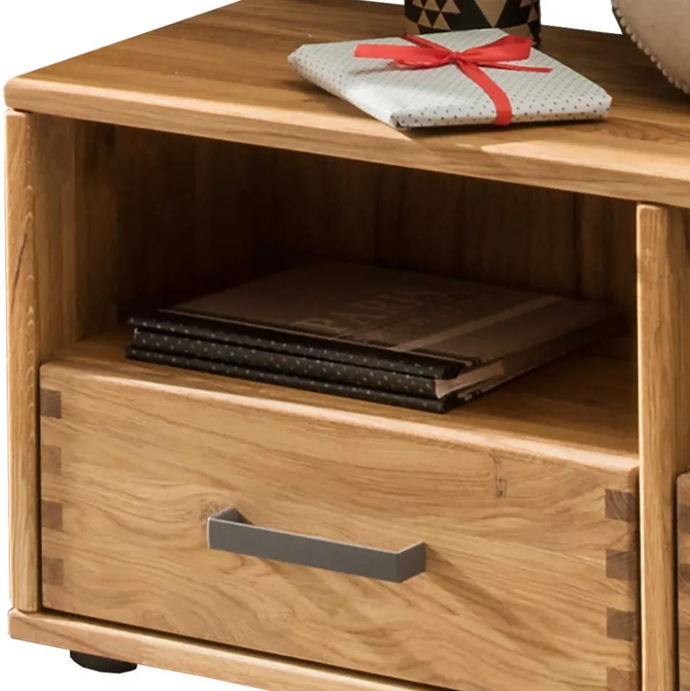 - Zwei Schubkästen mit Metall-Selbsteinzug und zwei offene Staufächer
