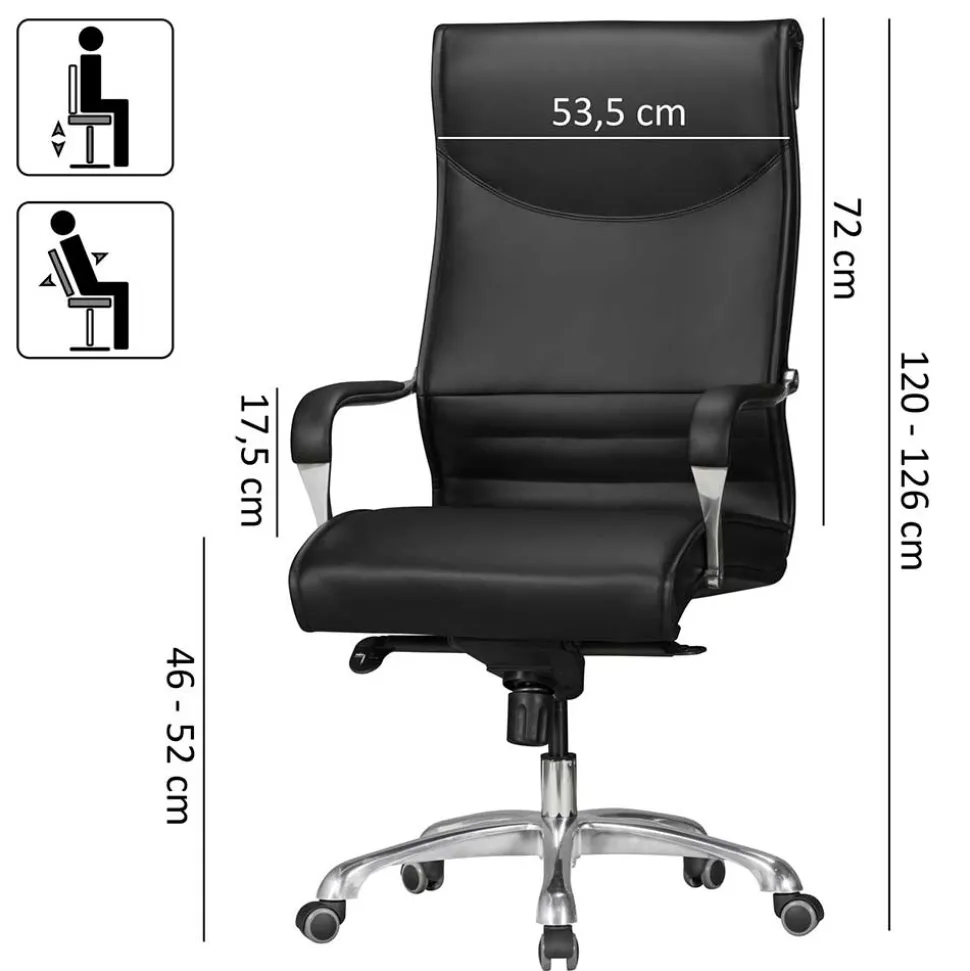Schwarz und Silber verleihen dem Bürostuhl „Wexford“ eine elegante Ausstrahlung und machen ihn zu einem echten Blickfang in jedem Büro. Dieser Stuhl verbindet klassischen Stil mit klaren Linien und feinen Ziernähten, die ihm eine zeitlose und anspruchsvolle Note verleihen. Das Design wirkt sowohl professionell als auch ästhetisch ansprechend und fügt sich problemlos in unterschiedlichste Büroeinrichtungen ein.