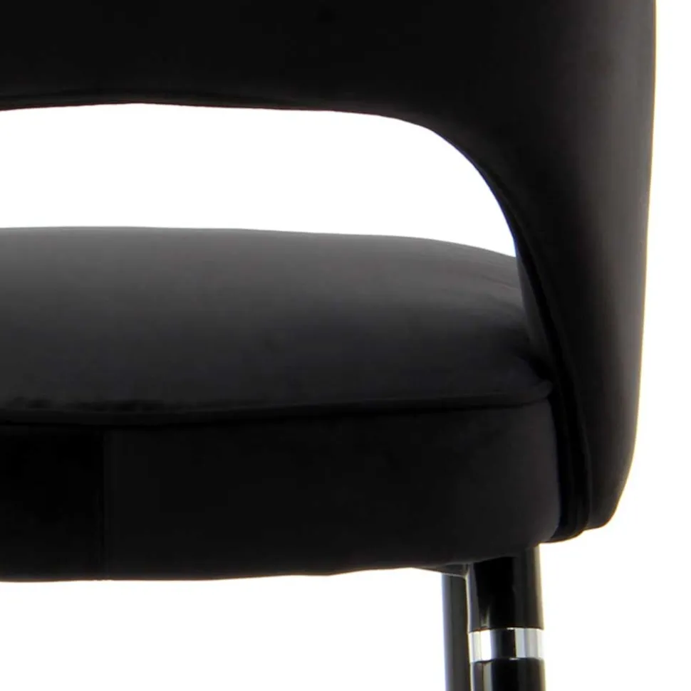 Ein Highlight dieses Designstuhls ist sein edler Samtbezug in tiefem Schwarz. Samt bringt nicht nur einen Hauch von Luxus in deinen Wohnraum, sondern fühlt sich auch unglaublich weich und angenehm an. Der Bezug aus 100 % Polyester ist besonders strapazierfähig und pflegeleicht – ideal für den täglichen Gebrauch.