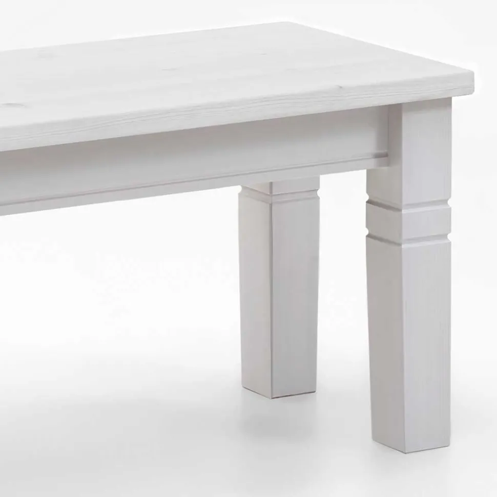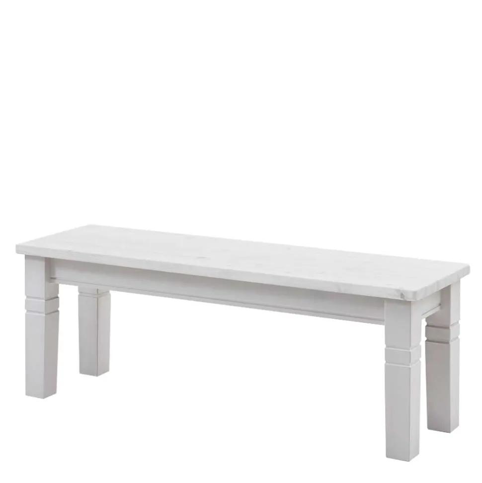 Gefertigt aus massivem Kiefernholz bringt diese Bank nicht nur Stabilität, sondern auch einen Hauch Natur in Ihre vier Wände. Kiefer gehört zu den besonders langlebigen Hölzern, ist pflegeleicht und überzeugt mit einem angenehm warmen Farbton. Die in Weiß lackierte Oberfläche wurde so behandelt, dass die typische Maserung sowie natürliche Äste sichtbar bleiben – das macht jede Essbank zu einem Unikat mit Charakter.