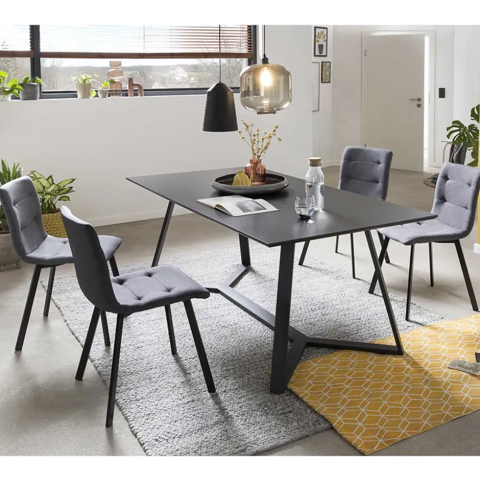 Vier stilvolle Stühle und ein großzügiger Esstisch bilden die elegante Einheit der Sitzgruppe „Diazaja“. In angesagten Hellgrau- und Dunkelgrautönen mit schwarzem Unterbau setzt dieses Möbelensemble ein modernes Design-Statement, das nicht nur optisch begeistert, sondern auch mit hochwertiger Verarbeitung und Komfort punktet. Perfekt geeignet für offene Wohnküchen, stilvolle Esszimmer oder urbane Lofts – „Diazaja“ schafft eine Atmosphäre, in der sich Gäste wie Familie gleichermaßen wohlfühlen.