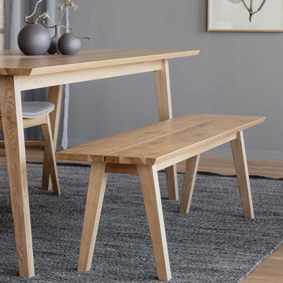 - Dezent schräg gestelltes Vierfußgestell aus Eiche Massivholz