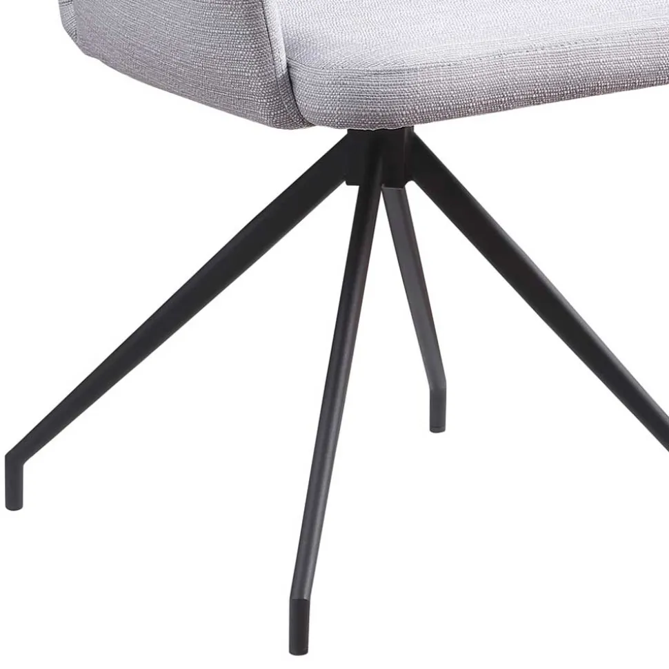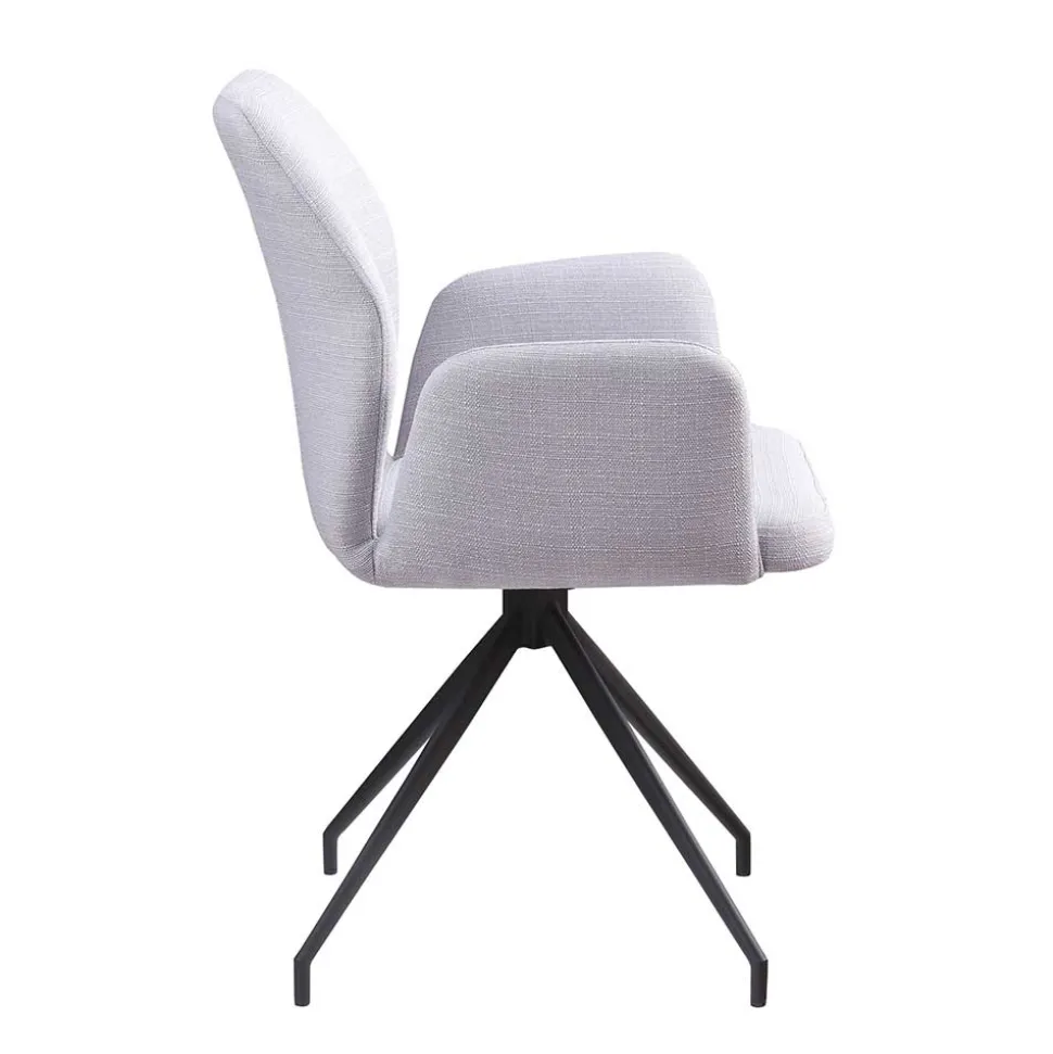 Ein weiteres Highlight ist das schwarze, pulverbeschichtete Metallgestell in moderner Spiderform, das nicht nur mit seiner außergewöhnlichen Optik begeistert, sondern auch um 180° drehbar ist. Diese Funktion bringt mehr Dynamik an den Esstisch und erlaubt ein müheloses Hinsetzen und Aufstehen – besonders praktisch im Alltag oder bei größeren Runden. Die sandgestrahlte Oberfläche sorgt zusätzlich für ein edles, mattes Finish.