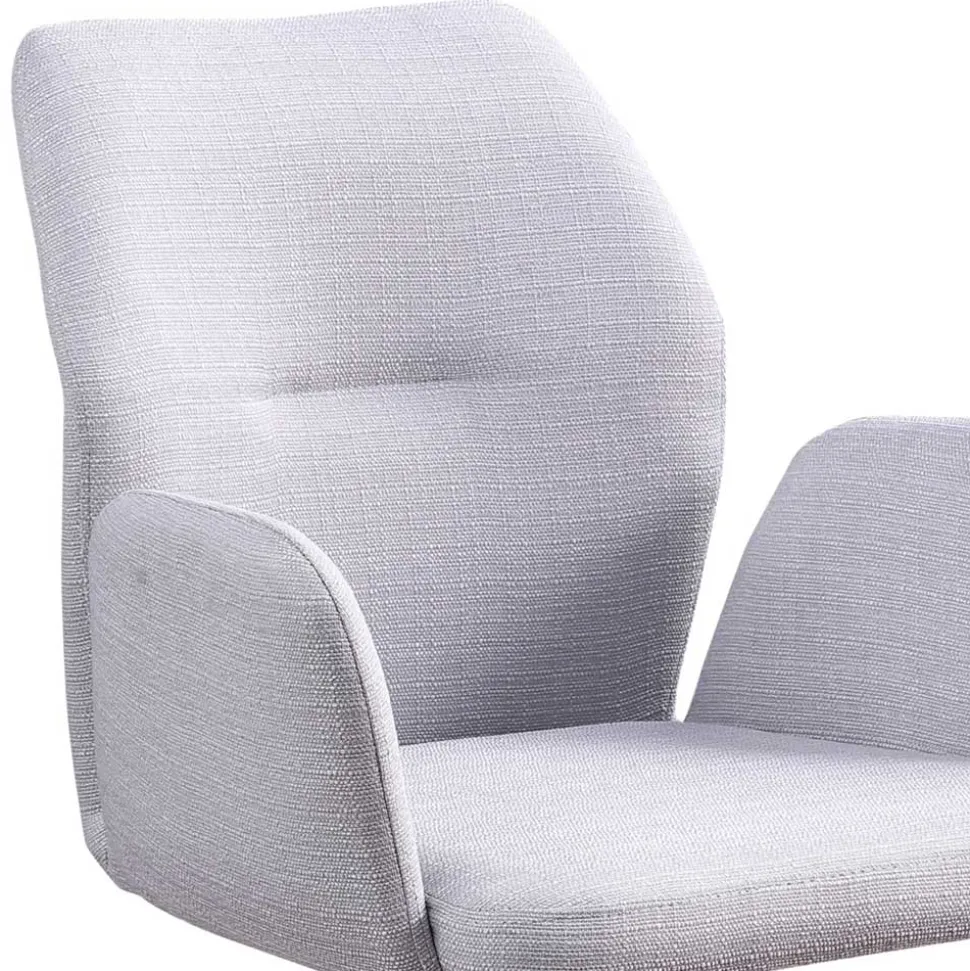 Der pflegeleichte Struktur-Webstoff in elegantem Hellgrau besteht aus 100 % Polyester und überzeugt nicht nur optisch, sondern auch funktional. Mit einer beeindruckenden Strapazierfähigkeit von 60.000 Scheuertouren nach dem Martindale-Verfahren ist der Bezug bestens gewappnet für den Alltag. Dieses Verfahren testet die Haltbarkeit eines Stoffes, indem er in kreisförmigen Bewegungen mechanisch belastet wird – je höher der Wert, desto robuster das Material. Mit diesem Stuhl holen Sie sich also ein Möbelstück ins Haus, das auch nach Jahren noch frisch und hochwertig aussieht.