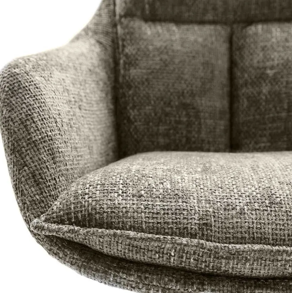 Das moderne Design des Drehstuhls „Combrit“ wird durch den taupefarbenen Strukturstoff aus 100 % Polyester unterstrichen. Dieser Stoff ist nicht nur besonders weich und angenehm im Griff, sondern auch pflegeleicht und langlebig. Die gemütliche Rückenlehne ist mit eleganten, linearen Steppnähten versehen, die dem Stuhl eine zusätzliche visuelle Raffinesse verleihen. Ein umlaufender Keder um die Sitz- und Rückenfläche sorgt für eine klare Linienführung und unterstreicht die hochwertige Verarbeitung.