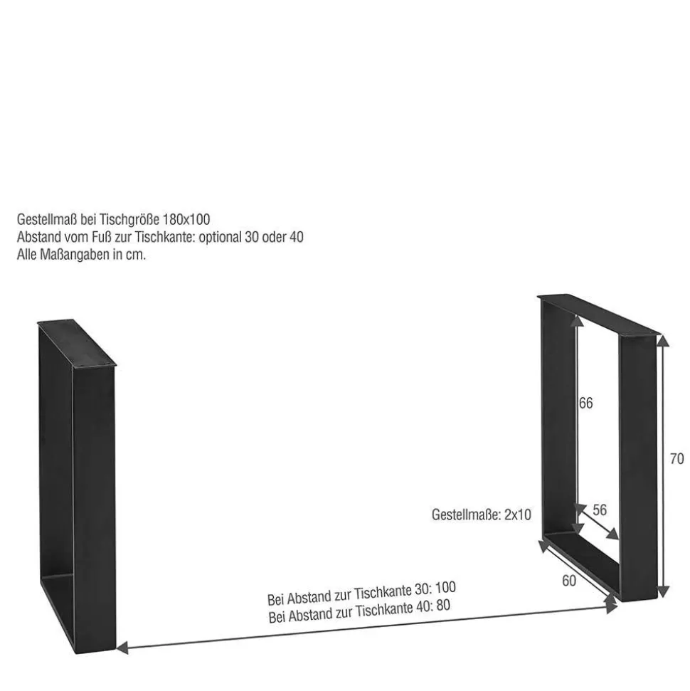 - Abstand zwischen den Tischbeinen an der Längsseite: ca. 80/100/120/140/160 cm