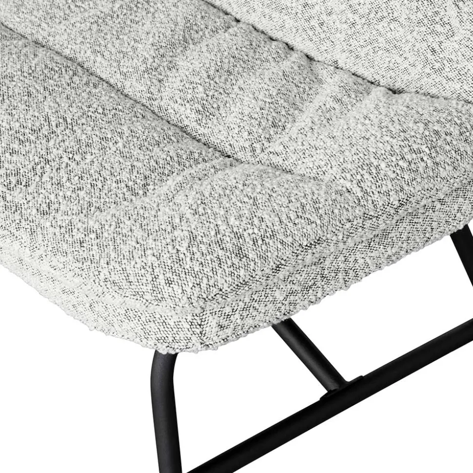 Der Bezug aus Bouclé in melierter Optik besteht aus 90 % Polyester und 10 % Acetat, ist besonders strapazierfähig und weich zugleich, mit einer außergewöhnlichen Scheuerbeständigkeit von 100.000 Martindale-Touren. Die Rückenlehne ist ca. 34 cm hoch und in Kombination mit der bequemen Schaumstoffpolsterung und dekorativen Steppungen mit attraktivem Faltenwurf entsteht ein hoher Sitzkomfort. Die Sitzhöhe beträgt ca. 52 cm und die Sitztiefe ca. 47 cm.