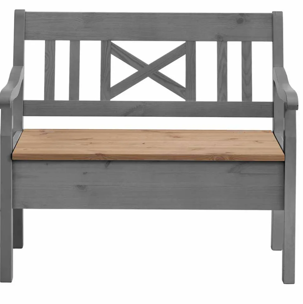 - Kleine Sitzbank in Grau und Kiefer laugenfarbig