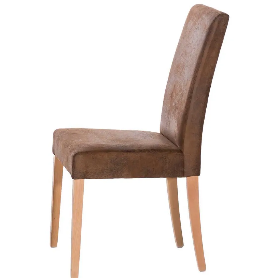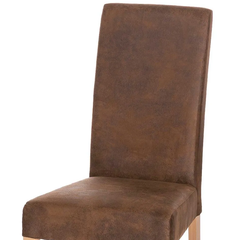 Der Bezug aus feinster Microfaser in Vintage-Optik ist nicht nur ein optischer Hingucker, sondern auch praktisch und pflegeleicht. Microfaser ist bekannt für seine Strapazierfähigkeit und Fleckenresistenz, ideal für ein lebhaftes Zuhause. Die Oberfläche ist unempfindlich gegenüber den täglichen Herausforderungen, die ein Esszimmerstuhl bewältigen muss. Abgerundet wird das Design durch eine hohe und gerade Rückenlehne, die mit dekorativen Ziersteppungen sowohl vorne als auch hinten versehen ist, um zusätzliche Eleganz und Komfort zu bieten.