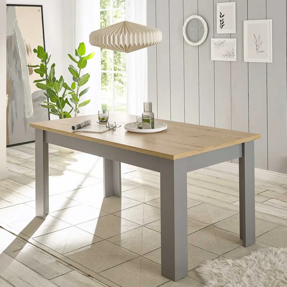 - Trendiger Esstisch in Lichtgrau und Eichefarben