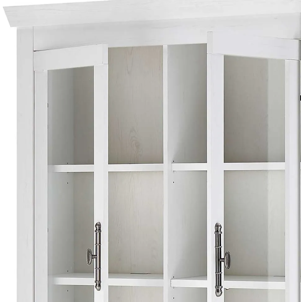 Die Möbelstücke werden aus robustem Holzwerkstoff gefertigt und sind mit einer pflegeleichten, melaminbeschichteten Oberfläche in Pinie Weiß veredelt. Diese sorgt nicht nur für einen authentischen Holz-Look, sondern schützt auch vor Kratzern und Flecken. Charmante Metall-Knopfgriffe in Altsilber und hochwertige Metallbeschläge mit Soft-Close-Funktion unterstreichen die durchdachte Qualität und Funktionalität des Sets.