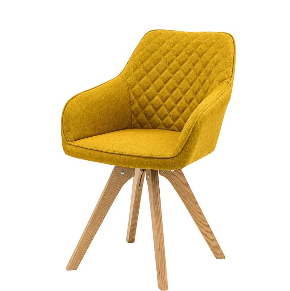 Die Maße der Stühle sind durchdacht und alltagstauglich: Mit einer Sitzhöhe von ca. 49 cm, einer Sitztiefe von ca. 42 cm und einer Armlehnenhöhe von ca. 64,5 cm sitzen Sie bequem und stabil. Das leicht schräg gestellte Vierfußgestell verleiht den Stühlen nicht nur zusätzliche Stabilität, sondern sorgt auch für eine elegante, luftige Optik.