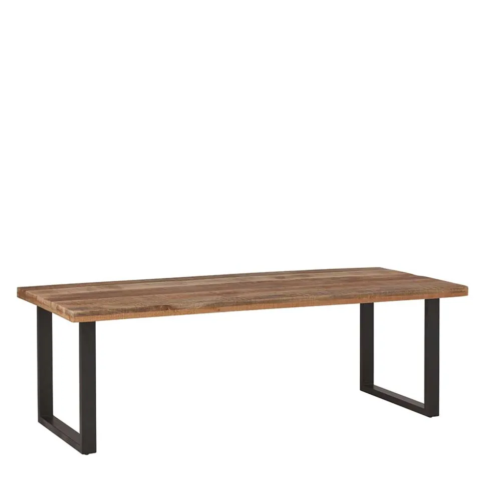 - Robuster Esstisch in Mangoholz Naturfarben und Schwarz