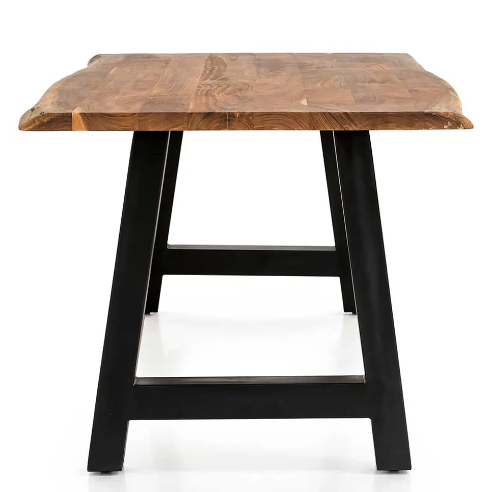 Das schwarz lackierte Metallgestell in moderner A-Form sorgt nicht nur für außergewöhnliche Standsicherheit, sondern unterstreicht auch den charakterstarken Industrial Look. Bodenschoner sind bereits integriert und schützen Ihren Boden zuverlässig – so genießen Sie die Vorzüge dieses Tisches ohne Kompromisse.