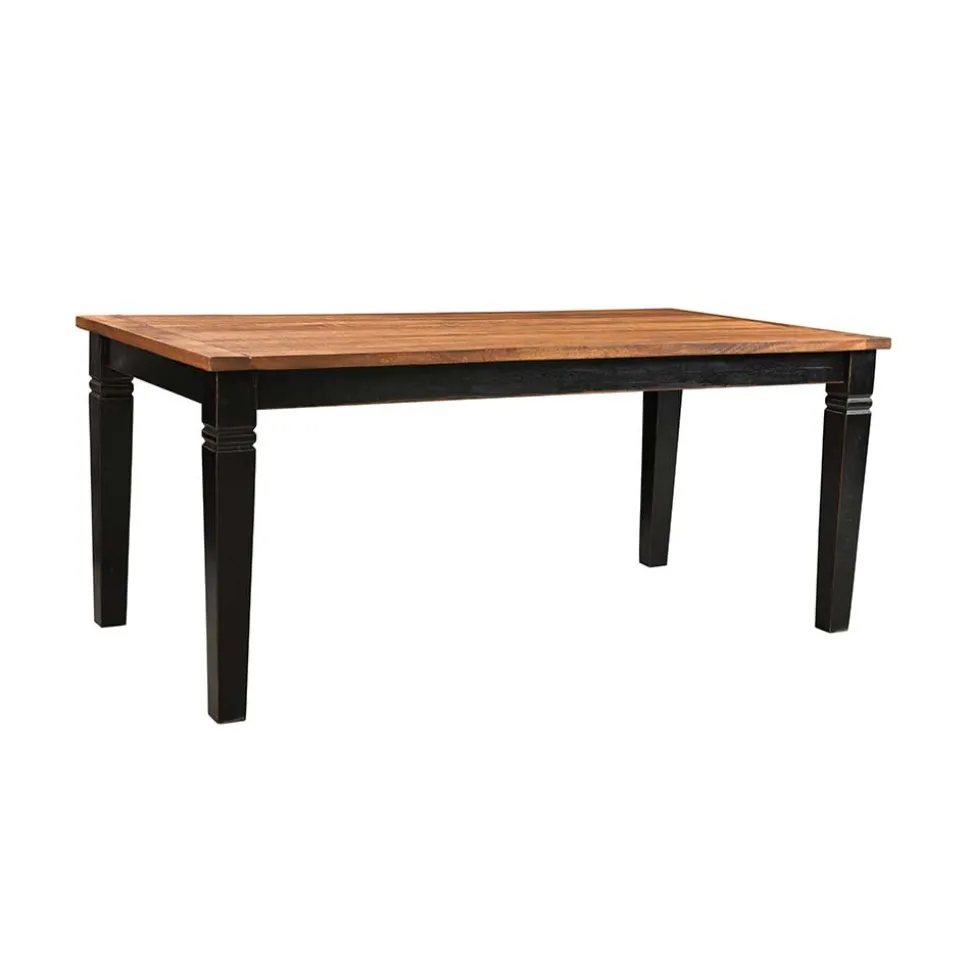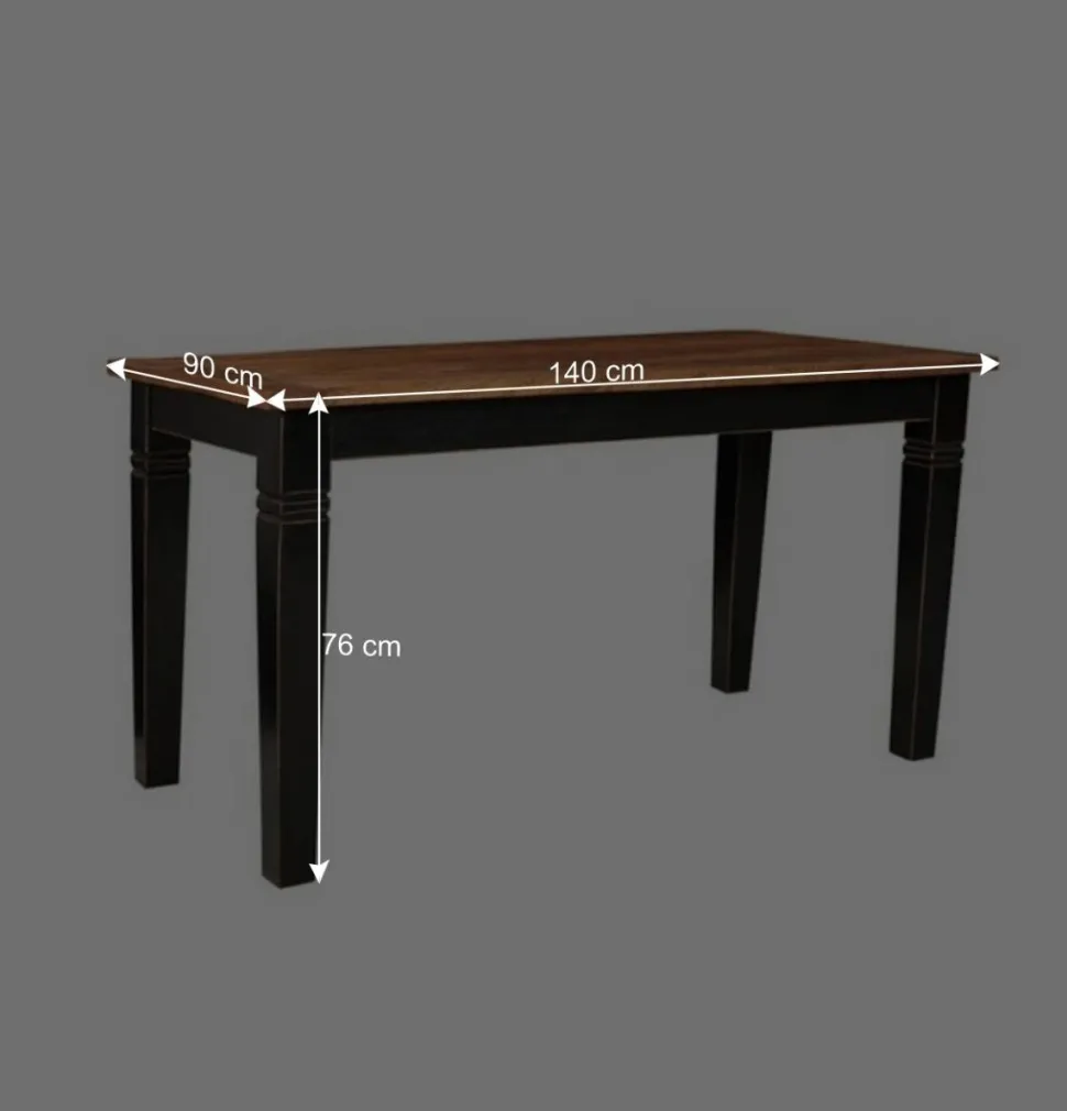 Dieser Tisch ist sorgfältig aus robustem Mangobaum Massivholz und MDF gefertigt. Der klassische, tiefschwarze Farbton seiner Oberflächen wurde mit einem Antik Finish vollendet und verleiht dem Tisch eine elegante Patina, die das nostalgische Ambiente des Kolonialstils betont. Gewollte Gebrauchsspuren und Kanten mit Abnutzungserscheinungen fügen sich nahtlos in dieses Design ein und verleihen dem Tisch eine authentische Ausstrahlung, die Sie in seinen Bann ziehen wird.