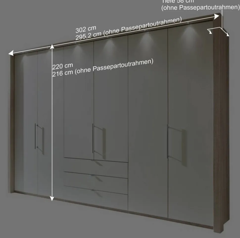 - Schrank ohne Passepartoutrahmen, Maße (BxHxT): 295,2x216x58 cm
