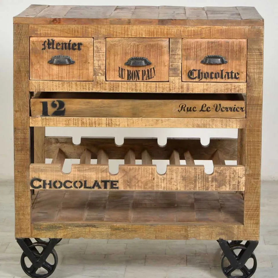 - Erstklassiger Servierwagen in Mangoholz Naturfarben
