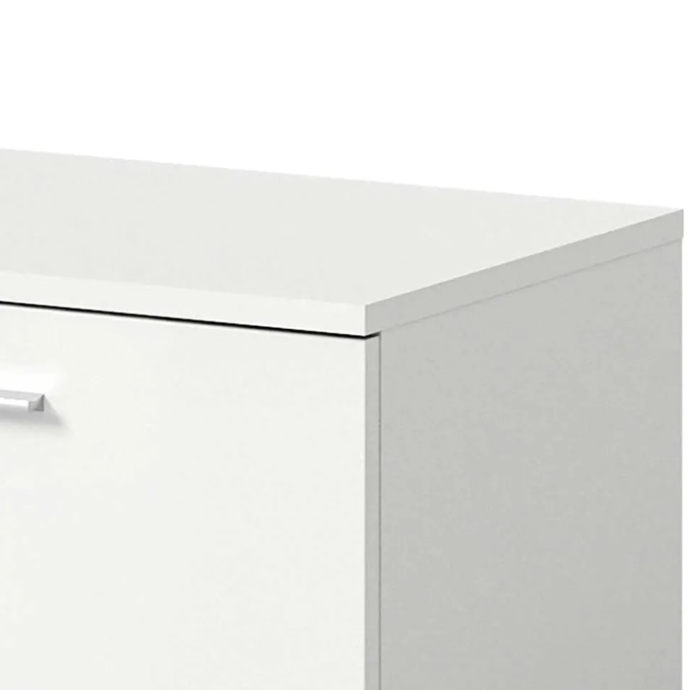 Auch die Front glänzt mit Funktion und Ästhetik: Die spezielle Hochglanzfolie verleiht der Rillenoptik Tiefe und Dimension, sodass die Garderobenbank zum stilvollen Hingucker wird. Langlebige Metallbeschläge sorgen dafür, dass die Klappe selbst nach jahrelangem Gebrauch einwandfrei funktioniert, und die silberfarbige Griffleiste rundet das Design harmonisch ab. Diese durchdachte Materialwahl macht die „Rugova“ zur perfekten Kombination aus Eleganz und Robustheit.