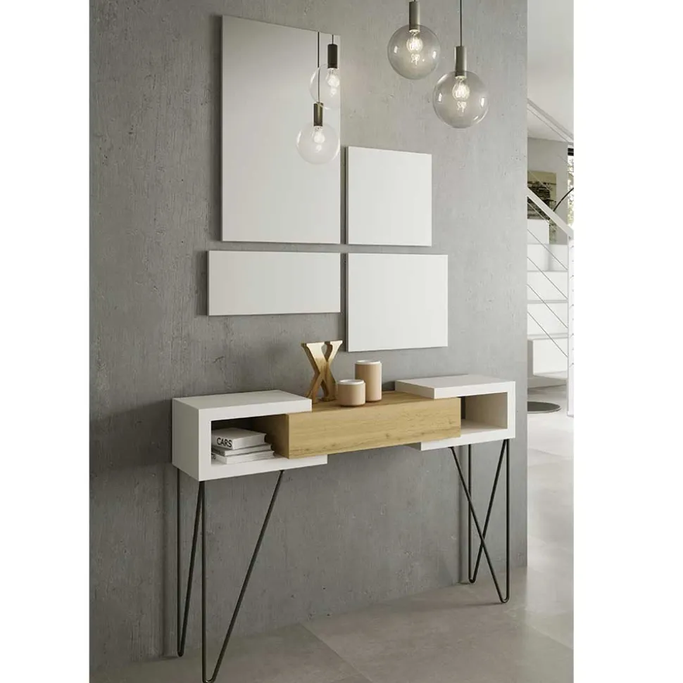 - Angefertigt aus MDF, Spiegelglas und Stahl