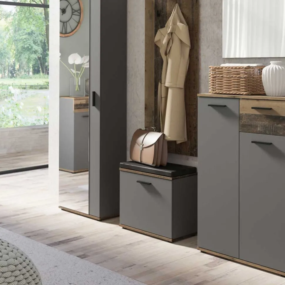 Flurbank in Anthrazit und Altholz Optik - Vlatu