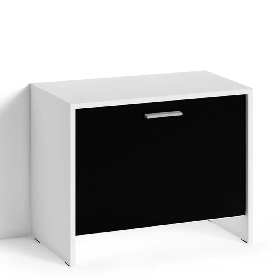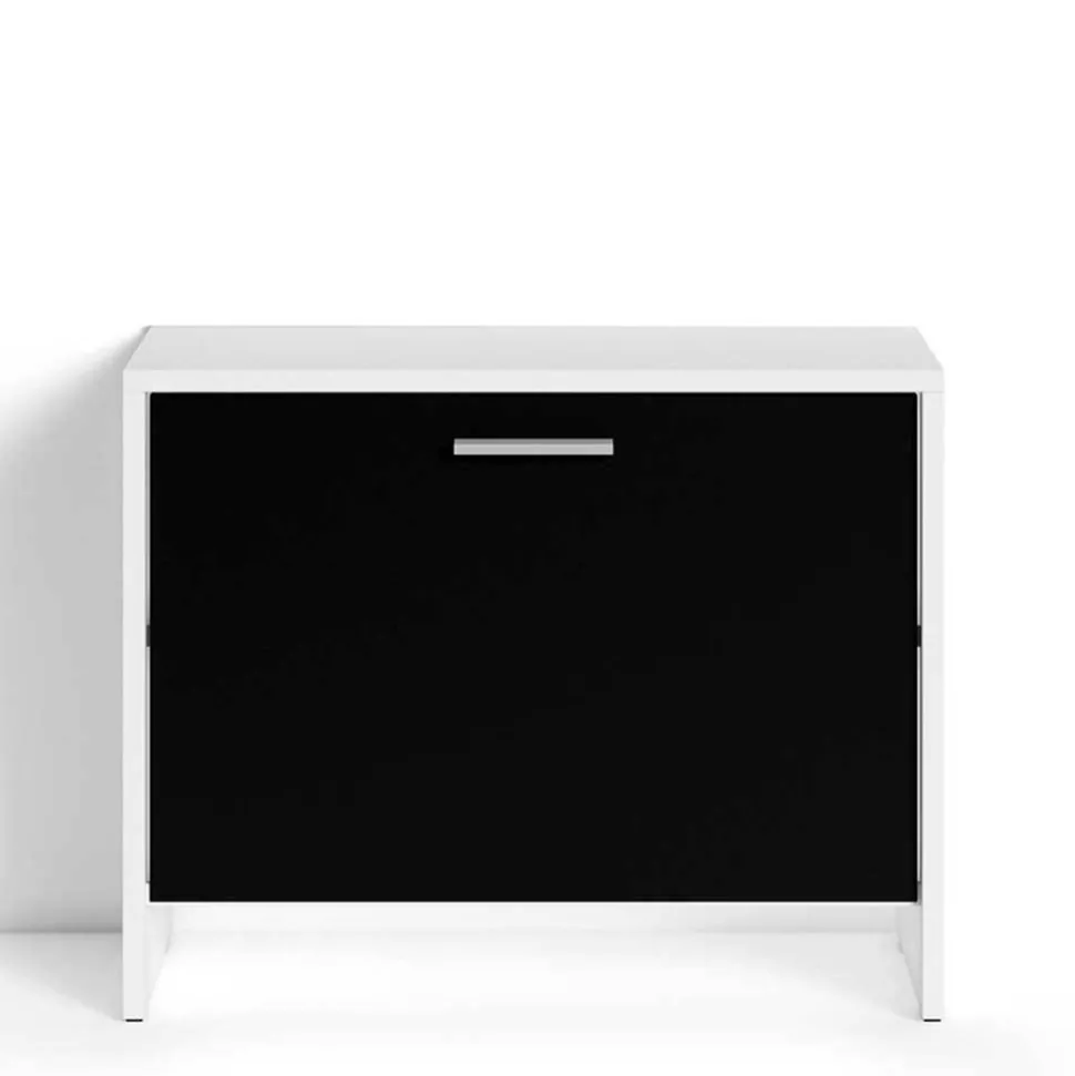 Hinter der Klappe verbirgt sich ein verstellbarer Einlegeboden mit einer beeindruckenden Belastbarkeit von bis zu 8 kg. Die kontrastreiche Farbgebung und die dezente Kunststoffgriffleiste in Silberfarben setzen optische Akzente und machen die Flurbank zu einem echten Blickfang.