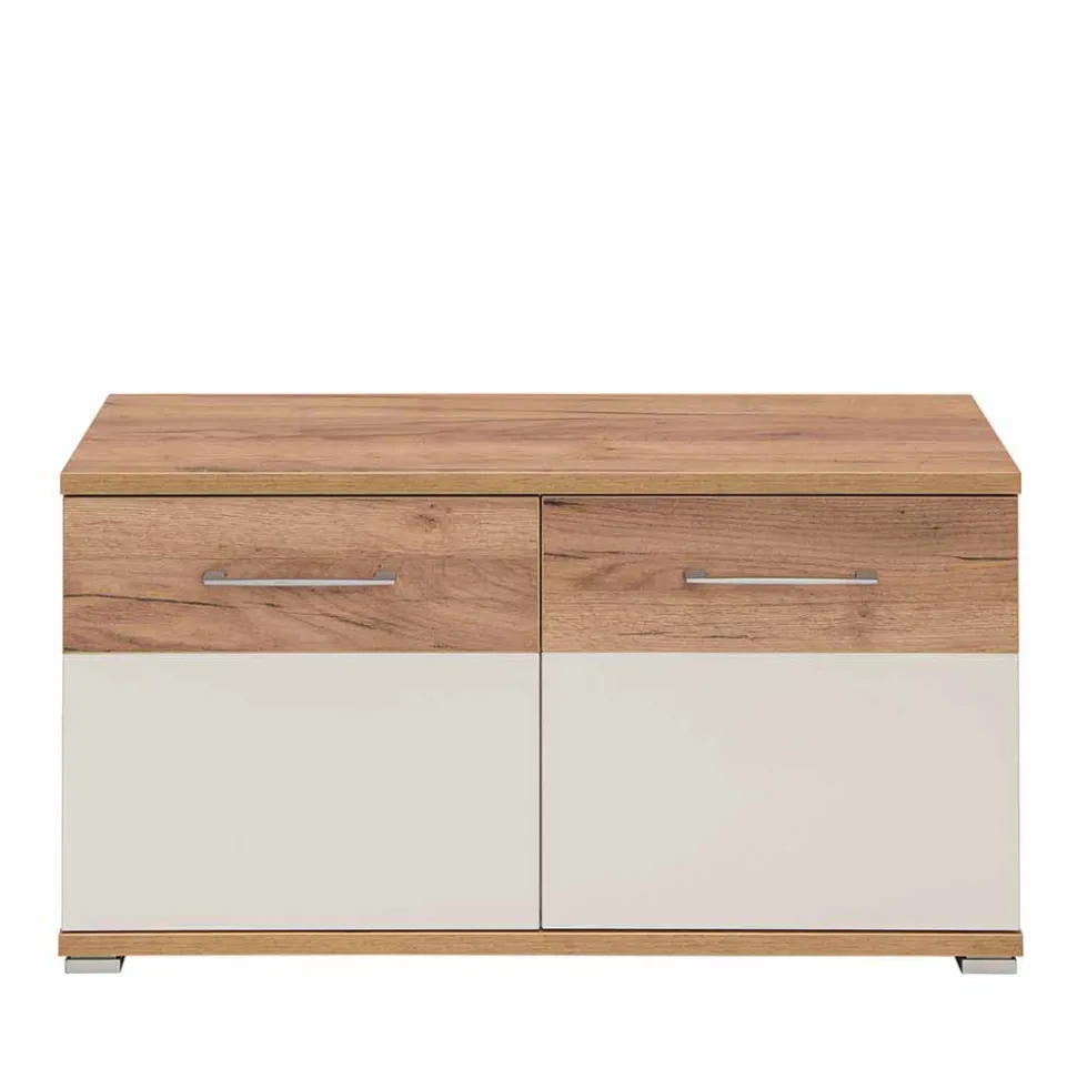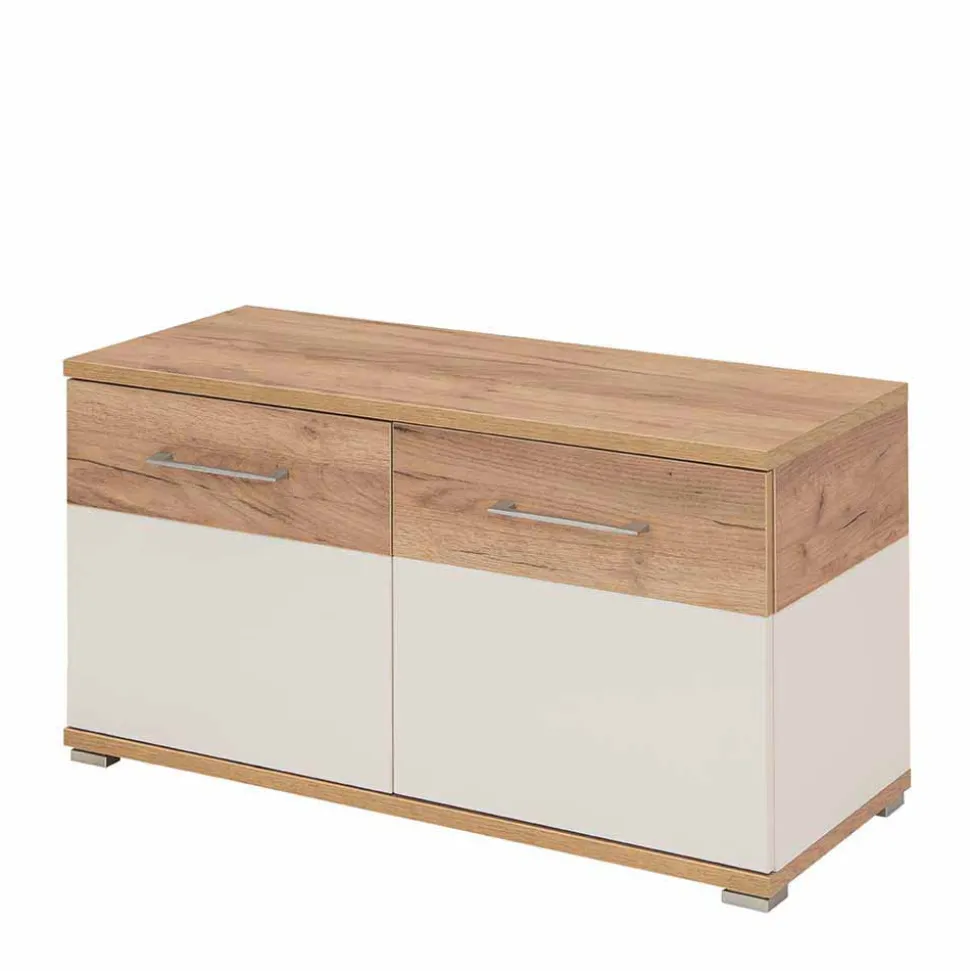 Schuhbank „Vicanossa“ verbindet modernes Wohngefühl mit einer behaglichen Note und wird so zum Highlight in Ihrem Eingangsbereich. Klare Linien, großzügige Formen und die harmonische Farbkomposition aus strahlendem Weiß und warmem Eiche-Dekor schaffen ein einladendes Ambiente, das Gäste und Bewohner gleichermaßen willkommen heißt. Das weiße Dekor sorgt für Helligkeit und eine frische Wirkung, während die eichefarbenen Elemente natürliche Wärme ausstrahlen. Die alufarbenen Metall-Bügelgriffe setzen dezente Akzente, die das moderne Gesamtbild vervollständigen. Dieses Möbelstück passt sowohl in puristisch-moderne als auch in gemütlich eingerichtete Flure – ein echter Allrounder für stilbewusste Haushalte.
