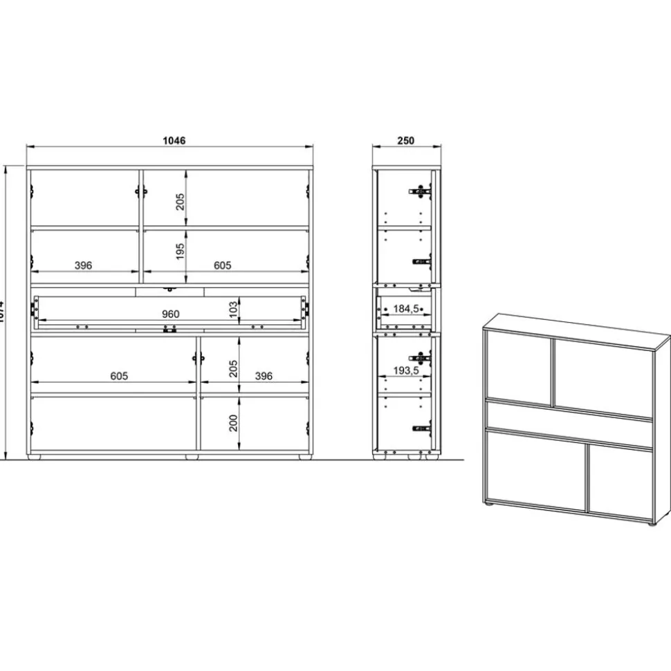 - Maximale Belastbarkeit: Deckplatte, Unterboden, Schublade und Einlegeböden jeweils 10 kg