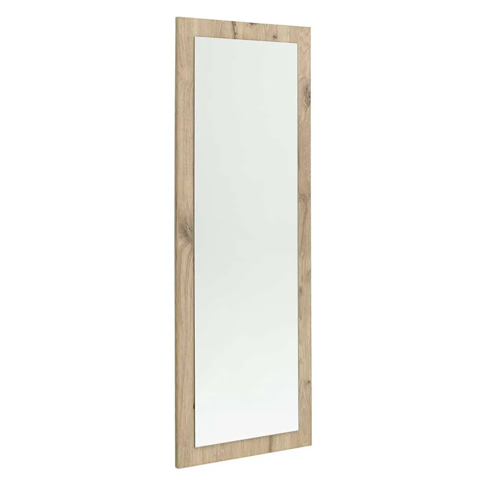 Der Rahmen des Spiegels besteht aus robuster Spanplatte, die für ihre Stabilität und Widerstandsfähigkeit bekannt ist. Spanplatten sind eine nachhaltige Wahl, da sie aus recyceltem Holz gefertigt werden und so zur Schonung wertvoller Ressourcen beitragen. Die Melaminbeschichtung in realistischer Wildeiche-Holzoptik sorgt nicht nur für eine natürliche und stilvolle Optik, sondern macht den Spiegel gleichzeitig äußerst pflegeleicht und widerstandsfähig gegenüber Feuchtigkeit, Kratzern und Abrieb.
