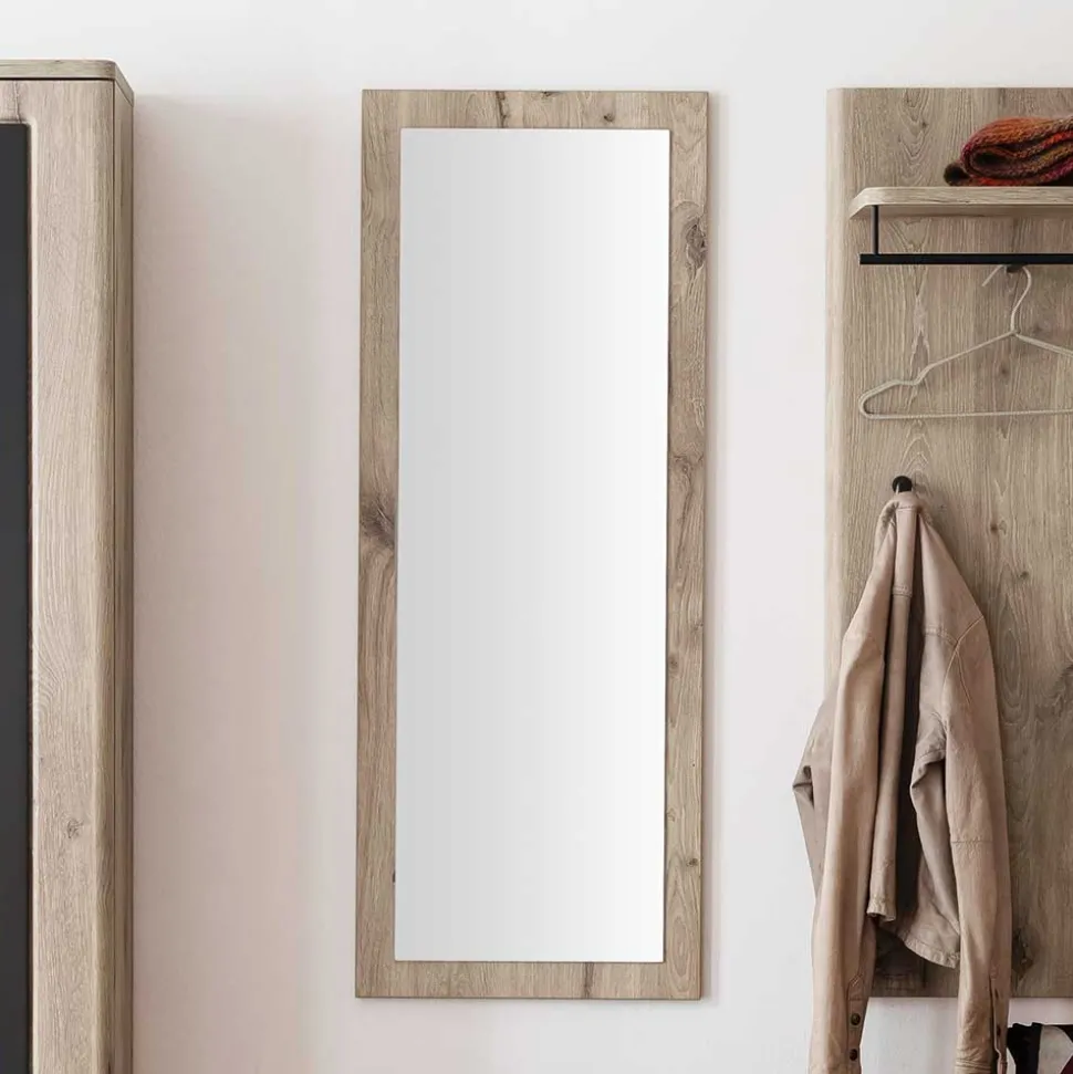 Flure, Schlafzimmer oder Ankleidezimmer – dieser elegante Flurspiegel Baiamare setzt in jedem Raum ein stilvolles Statement. Das moderne Design mit dem harmonischen Zusammenspiel aus Spiegelglas und einer hochwertigen Holzoptik in Wildeiche verleiht Ihrem Zuhause eine warme und einladende Atmosphäre. Dank seiner dezent gerundeten Korpuskanten wirkt der Spiegel besonders edel und fügt sich mühelos in verschiedene Wohnstile ein.
