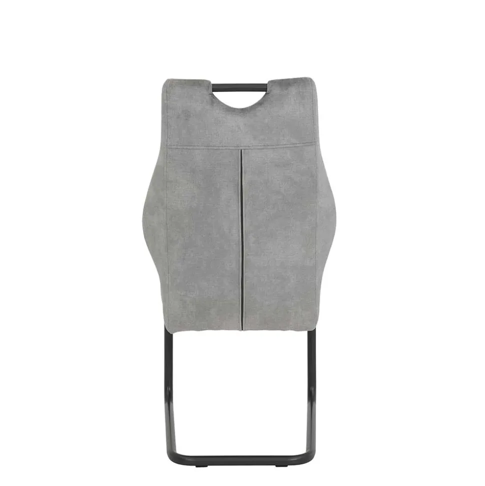 Das schwarz pulverbeschichtete Rundrohrgestell aus robustem Metall ist nicht nur ein optisches Highlight, sondern auch ein Garant für Langlebigkeit und Stabilität. Mit einer hohen Belastbarkeit von bis zu 140 kg und integrierten Bodenschonern steht der Stuhl sicher auf jedem Untergrund. Dank des praktischen Griffs an der Rückenlehne lässt sich der Stuhl mühelos verschieben – ideal, wenn Gäste kommen oder der Raum flexibel genutzt werden soll.