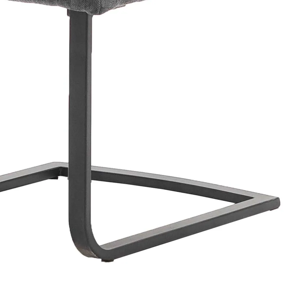 An der Rückseite der Lehne befindet sich ein schwarzer Metallgriff – nicht nur ein stylisches Designelement, sondern auch funktional: Der Griff erleichtert das Verschieben des Stuhls und schützt den edlen Stoff vor Fingerabdrücken. Das elegante Schwinggestell aus schwarz matt lackiertem Metall sorgt für Stabilität und fügt sich harmonisch in das Gesamtdesign ein. Dank der federnden Konstruktion erleben Sie ein sanftes Nachgeben beim Sitzen, was den Komfort nochmals erhöht. Und keine Sorge: Der Stuhl ist bis zu 120 kg belastbar und bietet somit sichere Stabilität für jeden Nutzer.