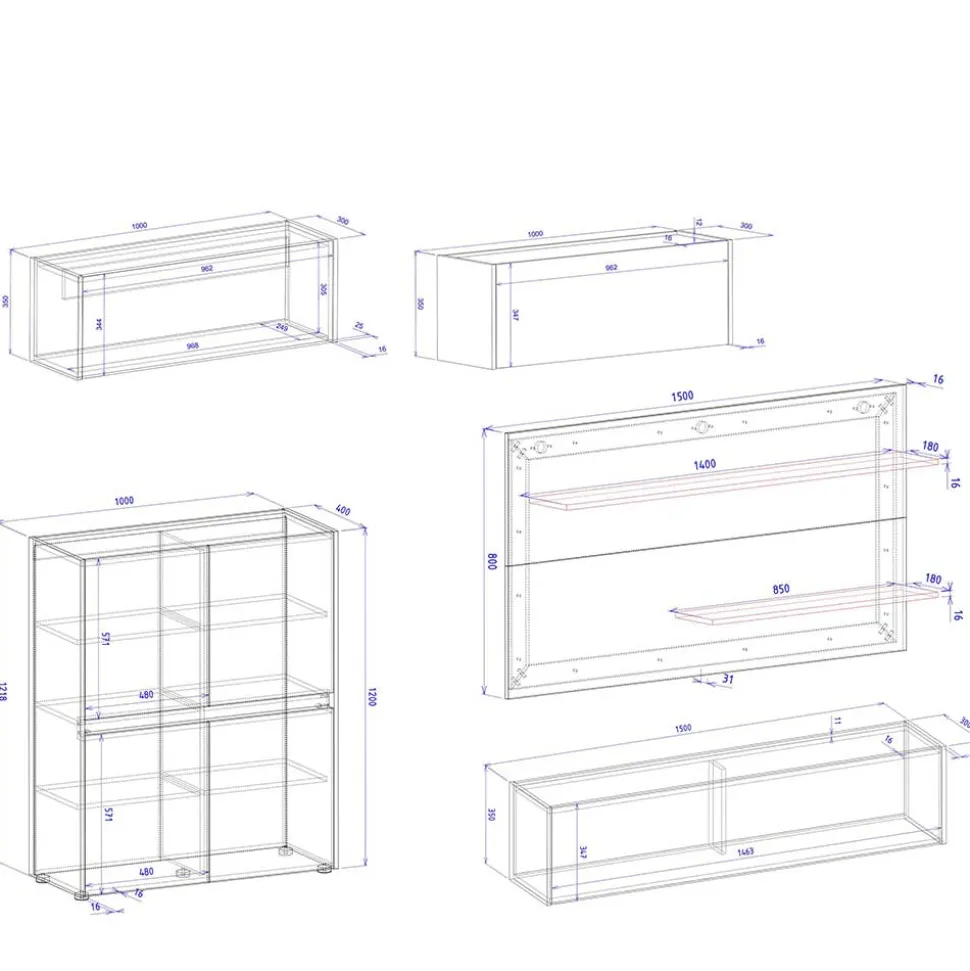 Modernes Design steht für klare Linien, unaufdringliche Eleganz und eine Kombination aus Form und Funktion. Unsere Wohnwand „Ahilav“ verkörpert diese Prinzipien perfekt. Sie besteht aus einem Highboard, einem breiten und einem schmalen Hängeschrank, einem Hängesekretär und einem Paneel. Jedes Element fügt sich harmonisch in das Gesamtbild ein und bietet gleichzeitig praktischen Stauraum.