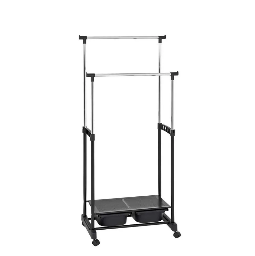- Praktische Rollgarderobe in Chromfarben und Schwarz
